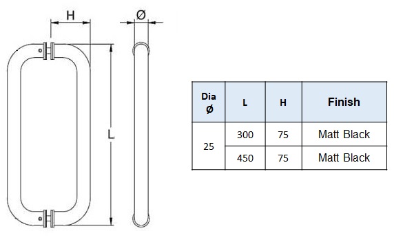 FCPH04BK – C Shaped Round Pull Handle (Matte Black)