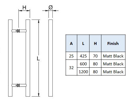 FCPH19BK – H Round Shaped Pull Handle (Matte Black)